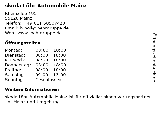 | Öffnungszeiten skoda Löhr Automobile Mainz in Mainz anzeigen | |
