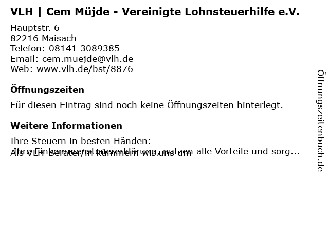 | VLH | Cem Müjde - Vereinigte Lohnsteuerhilfe e.V. anrufen | |