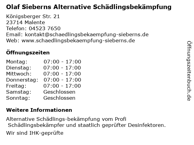 Branchen & Suchbegriffe zu Olaf Sieberns Alternative Schädlingsbekämpfung:alternative, olaf, schädlingsbekämpfung, sieberns |