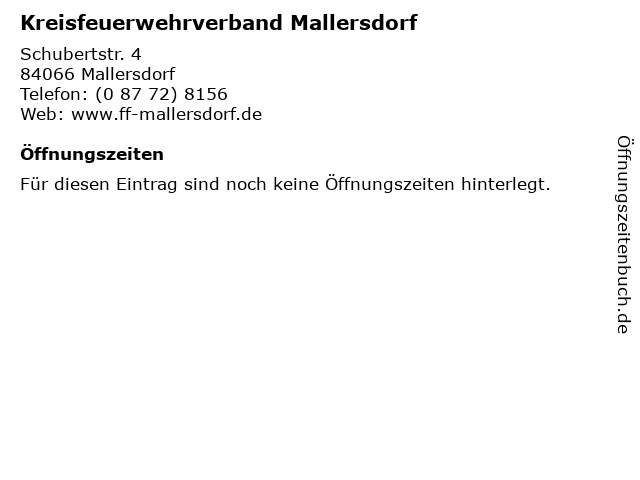 | Kreisfeuerwehrverband Mallersdorf anrufen | |