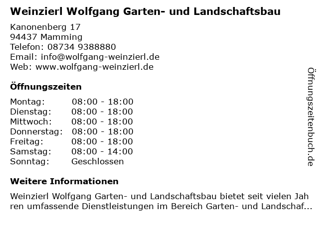 Branchen & Suchbegriffe zu Weinzierl Wolfgang Garten- und Landschaftsbau:garten, landschaftsbau, weinzierl, wolfgang |