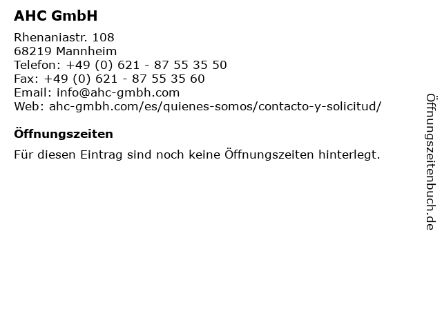 | Öffnungszeiten AHC GmbH in Mannheim anzeigen | |