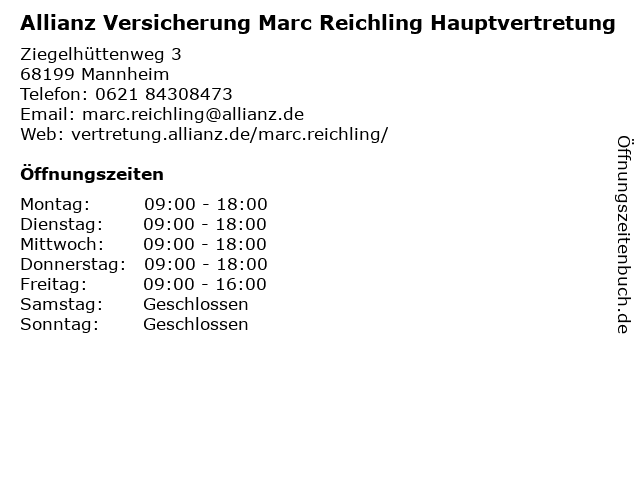 1 SIGNAL IDUNA Versicherung Marc Reichling - Versicherungsagentur (Entfernung: 0,00 km) Ziegelhüttenweg 3, 68199 Mannheim 5 Allianz Hauptvertretung Dominique von Brück (Entfernung: 15,16 km) Friedrich-Ebert-Anlage 61, 69117 Heidelberg 6 |