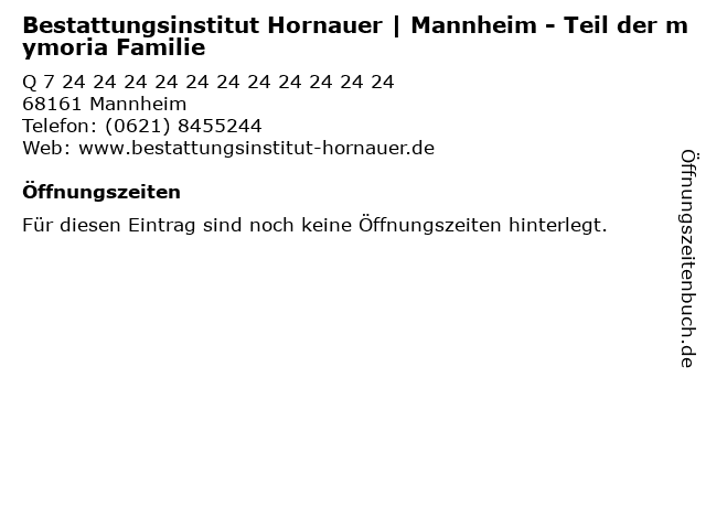 | Bestattungsinstitut Hornauer | Mannheim - Teil der mymoria Familie anrufen | |