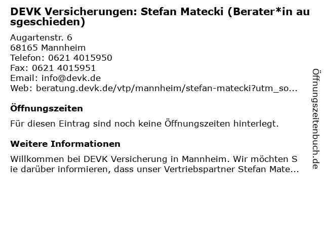 | DEVK Versicherungen: Stefan Matecki (Berater*in ausgeschieden) anrufen | |