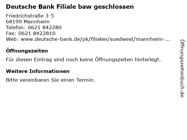 | Deutsche Bank Filiale baw geschlossen anrufen | |