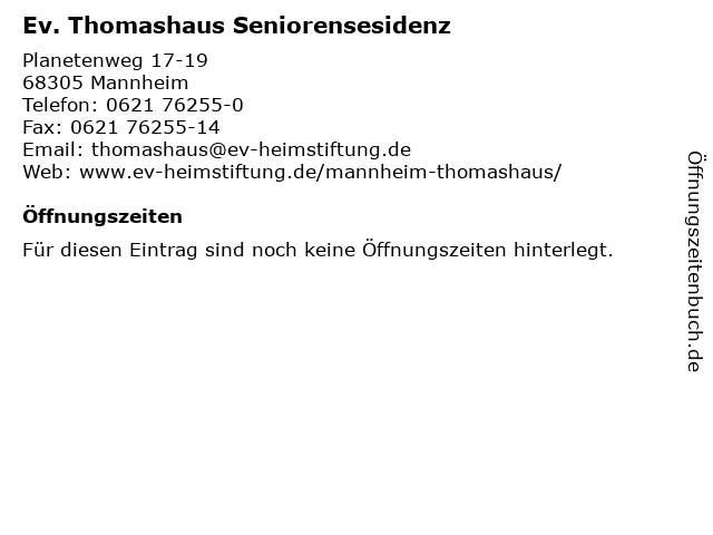 | Ev. Thomashaus Seniorensesidenz anrufen | |