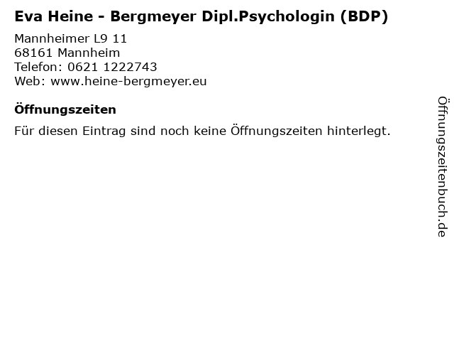 | Eva Heine - Bergmeyer Dipl.Psychologin (BDP) anrufen | |
