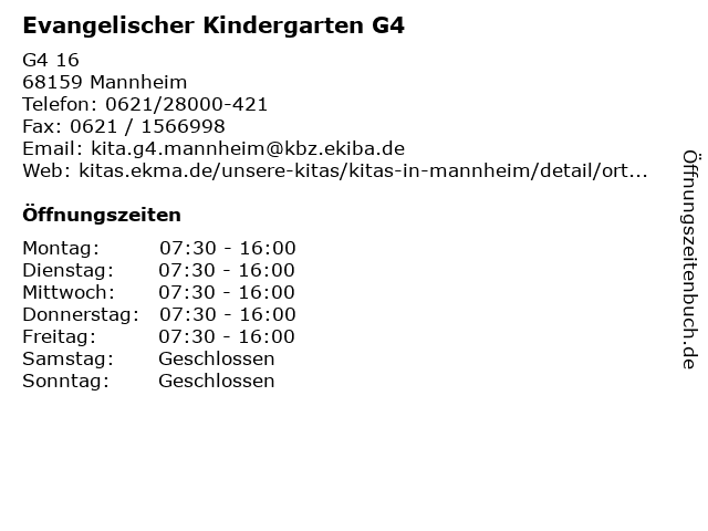 Evangelischer Kindergarten G4 in Mannheim: Telefonnummer, Öffnungszeiten und Adresse