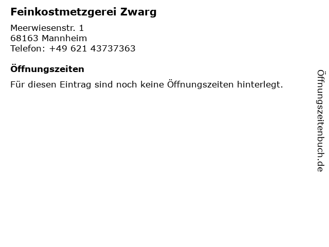 | Öffnungszeiten Feinkostmetzgerei Zwarg in Mannheim anzeigen | |
