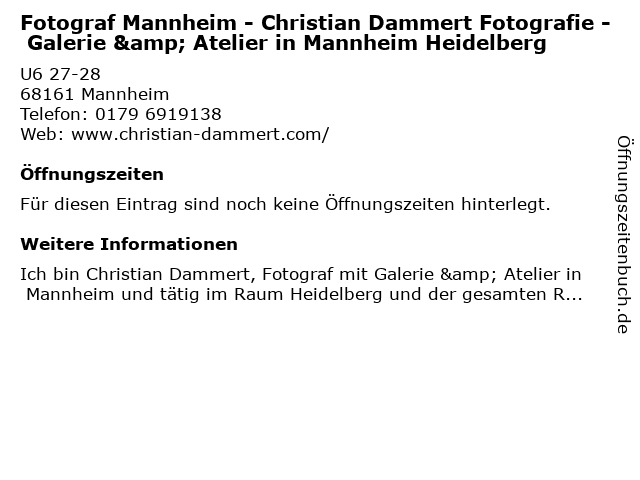 | Fotograf Mannheim - Christian Dammert Fotografie - Galerie & Atelier in Mannheim Heidelberg anrufen | |
