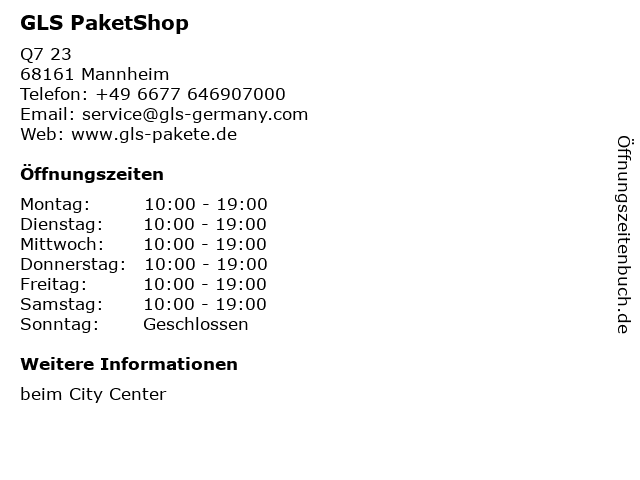 GLS PaketShop in Mannheim | Telefonnummer, Öffnungszeiten und Adresse