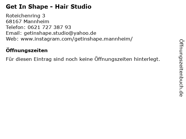 | Telefonnummer Get In Shape - Hair Studio in Mannheim (0621 727 387 93) anrufen | |