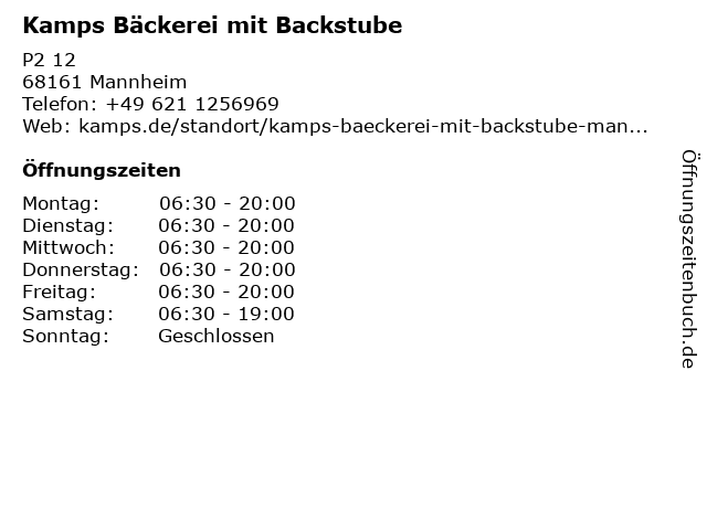 Öffnungszeiten Kamps Bäckerei mit Backstube in Mannheim anzeigen