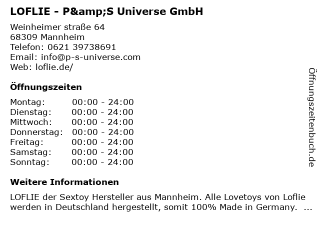 | Öffnungszeiten LOFLIE - P&S Universe GmbH in Mannheim anzeigen | |