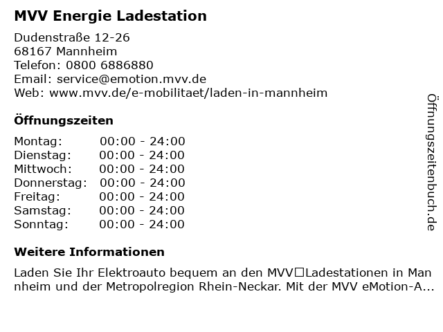 Öffnungszeiten MVV Energie Ladestation in Mannheim anzeigen
