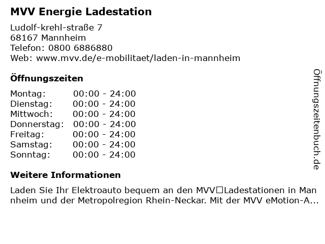 Öffnungszeiten MVV Energie Ladestation in Mannheim anzeigen