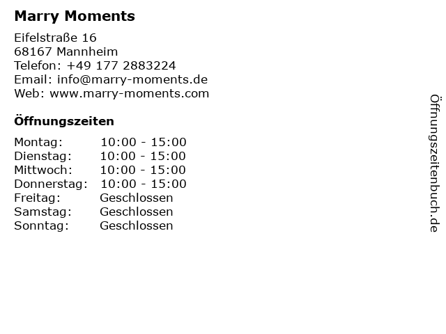 Öffnungszeiten Marry Moments in Mannheim anzeigen | |
