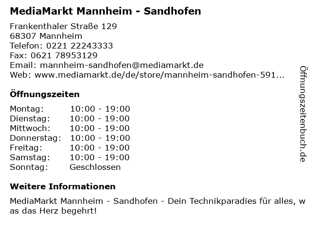 Branchen & Suchbegriffe zu MediaMarkt Mannheim - Sandhofen:anbieter für telekommunikationsgeräte, computergeschäft, geschäft für handyzubehör, geschäft für heimaudiosysteme, geschäft für videospiele, handyreparaturgeschäft, haushaltsgeräte, mediamarkt, mobiltelefongeschäft, sandhofen |