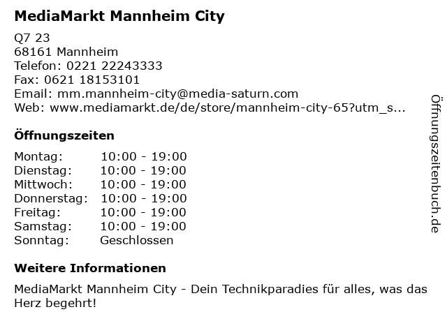 Öffnungszeiten MediaMarkt Mannheim City in Mannheim anzeigen | |