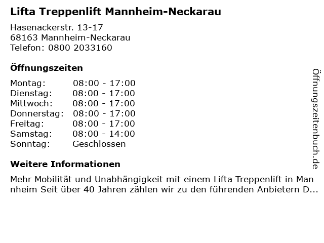 Branchen & Suchbegriffe zu Lifta Treppenlift Mannheim-Neckarau:lifta, neckarau, treppenlift |
