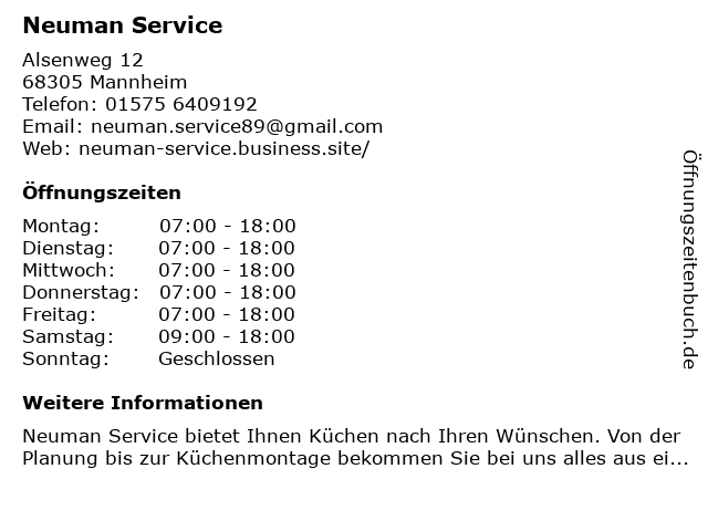 | Öffnungszeiten Neuman Service in Mannheim anzeigen | |