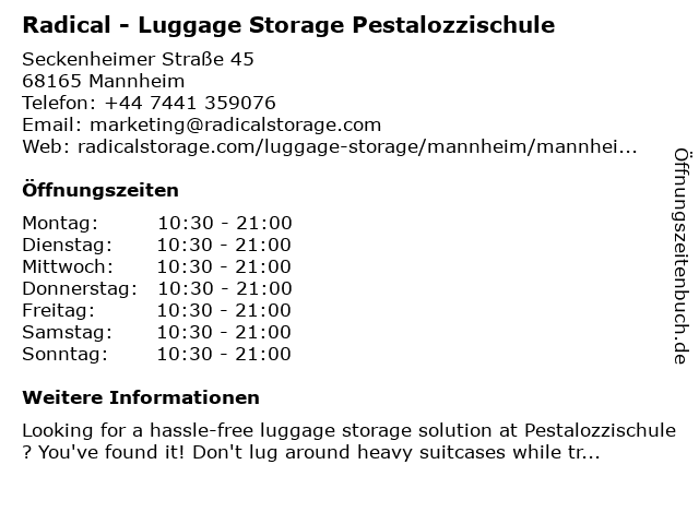 Branchen & Suchbegriffe zu Radical - Luggage Storage Pestalozzischule:luggage, luggage storage, luggage storage near me, pestalozzischule, radical, storage |