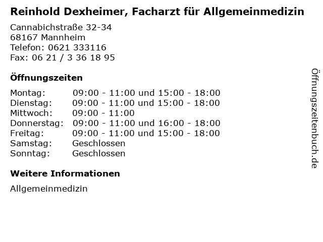 Branchen & Suchbegriffe zu Reinhold Dexheimer, Facharzt für Allgemeinmedizin:allgemeinmedizin, arzt, dexheimer, facharzt, reinhold, sprechzeiten |