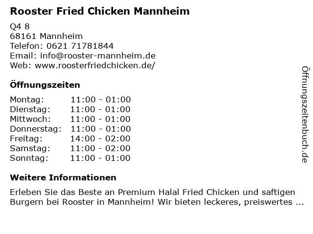 Branchen & Suchbegriffe zu Rooster Fried Chicken Mannheim:burger-lokal, chicken, chicken wings restaurant, fried, restaurant-lieferservice, restaurants, rooster, sandwich-restaurant, soul-food-restaurant |