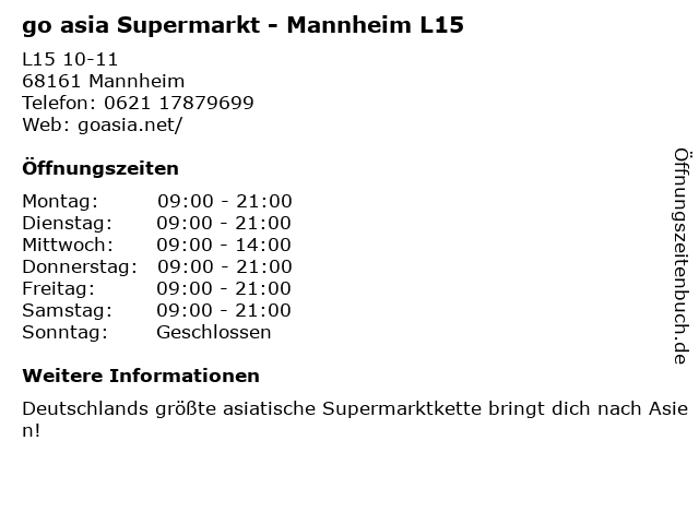 Branchen & Suchbegriffe zu go asia Supermarkt - Mannheim L15:asia, go, l15, supermarkt, supermärkte |