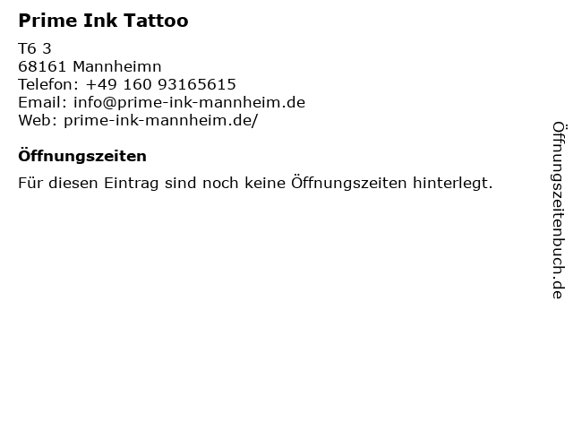| Öffnungszeiten Prime Ink Tattoo in Mannheimn anzeigen | |