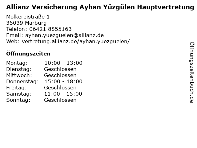1 Allianz Versicherung Stefan Frischemeier Hauptvertretung (Entfernung: 1,21 km) Marburger Straße 52 a, 35043 Marburg 3 Generali Versicherungen - Uwe Bohr Hauptvertretung (Entfernung: 11,01 km) Gladenbacher Strasse 43a, 35112 Fronhausen 5 Allianz Versicherung Patrick Diehl Hauptvertretung (Entfernung: 11,61 km) Borngasse 11, 35274 Kirchhain 6 Allianz Versicherung -Markus Schira Hauptvertretung (Entfernung: 11,64 km) Mittelstr. 13, 35274 Kirchhain |