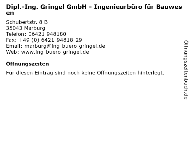 | Dipl.-Ing. Gringel GmbH - Ingenieurbüro für Bauwesen anrufen | |