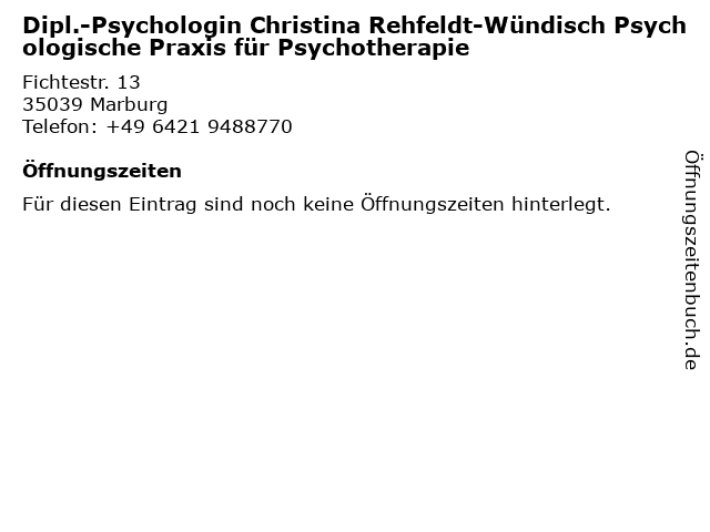 | Dipl.-Psychologin Christina Rehfeldt-Wündisch Psychologische Praxis für Psychotherapie anrufen | |