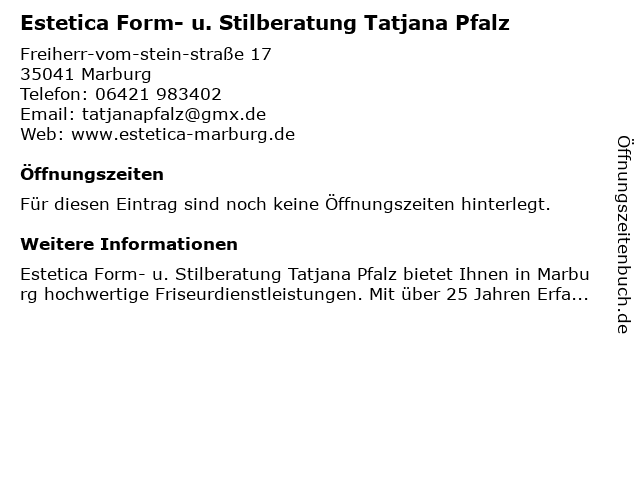 | Estetica Form- u. Stilberatung Tatjana Pfalz anrufen | |
