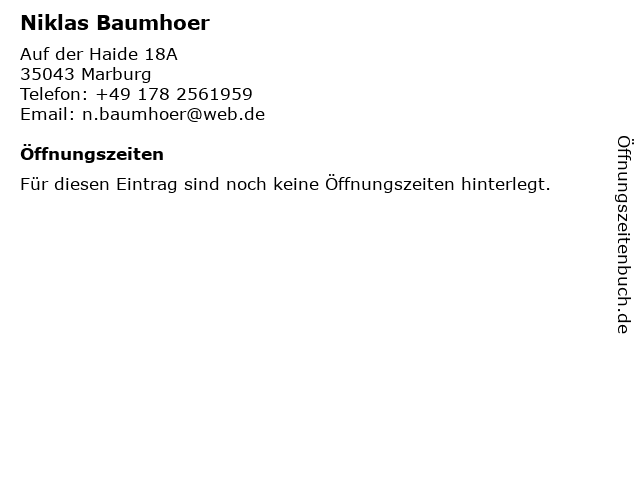 | Öffnungszeiten Niklas Baumhoer in Marburg anzeigen | |