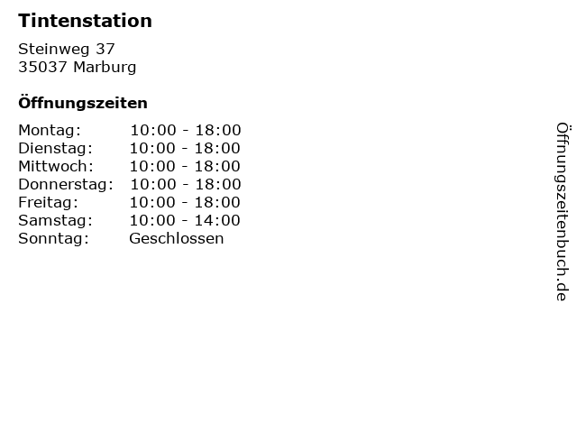 | Öffnungszeiten Tintenstation in Marburg anzeigen | |
