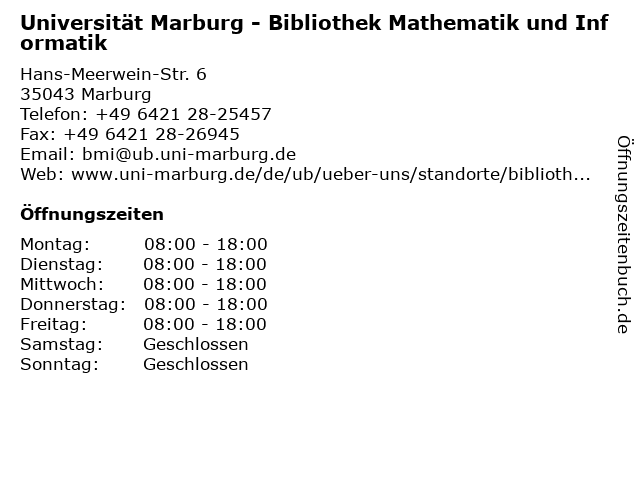 Branchen & Suchbegriffe zu Universität Marburg - Bibliothek Mathematik und Informatik:bibliothek, buch, buchscanner, informatik, literaturen, mathematik, sprachen, universität |