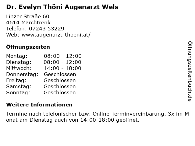 Branchen & Suchbegriffe zu Dr. Evelyn Thöni Augenarzt Wels:augenarzt, dr., evelyn, thöni, wels |