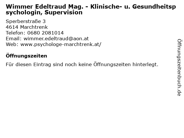 | Wimmer Edeltraud Mag. - Klinische- u. Gesundheitspsychologin, Supervision anrufen | |