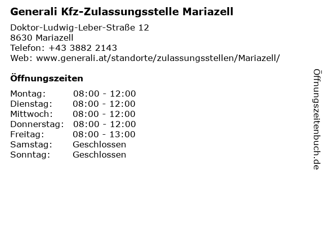 Öffnungszeiten Generali Kfz-Zulassungsstelle Mariazell