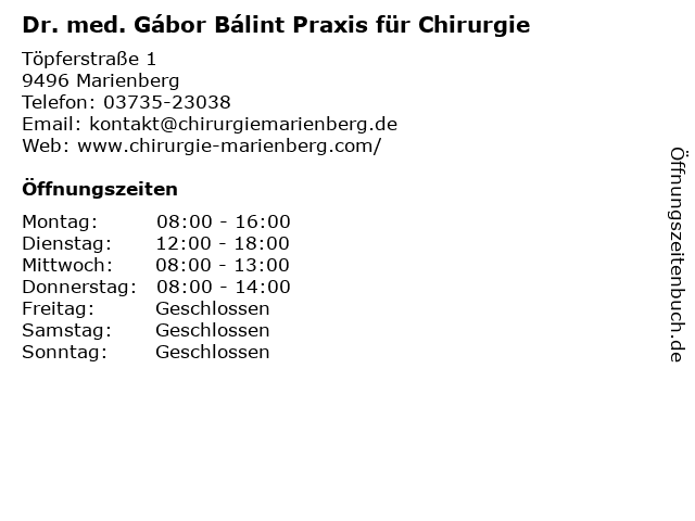 2 MVZ Chirurgie, Dr. med. T. Dietrich, Erzgebirgsklinikum MVZ gGmbH (Entfernung: 12,31 km) Beethovenstraße 16, 09405 Zschopau 3 MVZ Chirurgie, C. Körner, Erzgebirgsklinikum MVZ gGmbH (Entfernung: 12,49 km) Albertstraße 2, 09526 Olbernhau 4 MVZ Chirurgie & Orthopädie, Dr. med. D. Müller, Erzgebirgsklinikum MVZ gGmbH (Entfernung: 12,72 km) Chemnitzer Straße 15, 09456 Annaberg-Buchholz 5 MVZ Chirurgie & Orthopädie, Dr. med. O. Fuchs, Erzgebirgsklinikum MVZ gGmbH (Entfernung: 12,72 km) Chemnitzer Straße 15, 09456 Annaberg-Buchholz 6 Dr. med. Andre Barthel & Dr. Heiko Dietel - Praxis für Chirurgie (Entfernung: 13,60 km) Münzgasse 2-4, 09456 Annaberg-Buchholz |