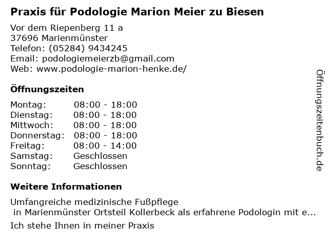 Branchen & Suchbegriffe zu Praxis für Podologie Marion Meier zu Biesen:behandlung von eingewachsenen zehennägeln, biesen, fußpflege, hausbesuche, hühneraugenentfernung, marion, medizinische fußpflege, meier, mobile podologen, nagelkorrektur durch spangen, podologie, podologie-praxis, podologische behandlung, podologische fußpflege, podologische komplexbehandlung, praxis, problemnägel, spangentechnik, zu |