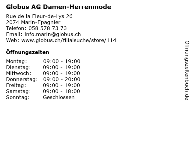 Branchen & Suchbegriffe zu Globus AG Damen-Herrenmode:bekleidung, damen, damenmode, fashion, globus, herrenmode, marin, mode, schild |