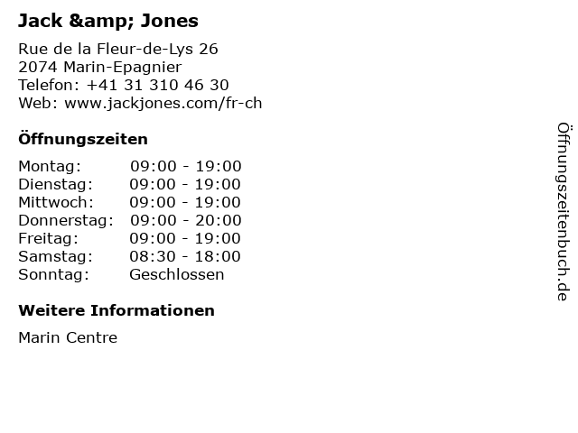 | Öffnungszeiten Jack & Jones in Marin-Epagnier anzeigen | |