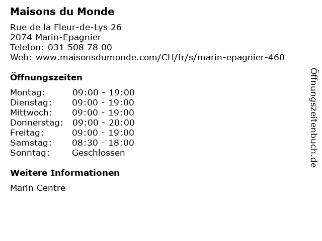 Öffnungszeiten Maisons du Monde in Marin-Epagnier anzeigen | |
