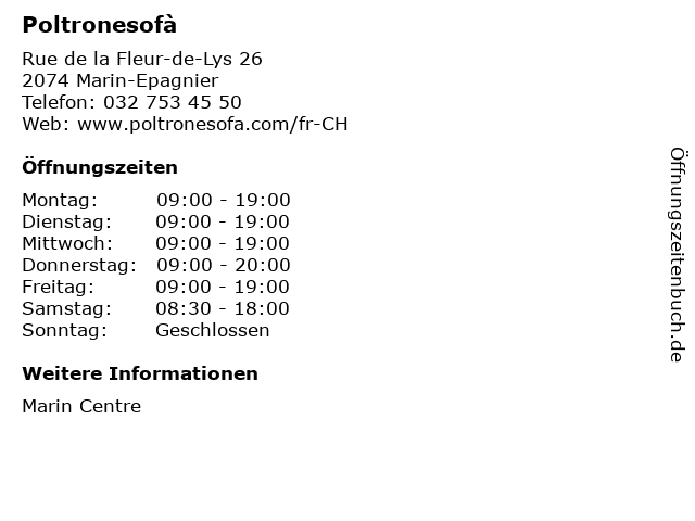 | Öffnungszeiten Poltronesofà in Marin-Epagnier anzeigen | |