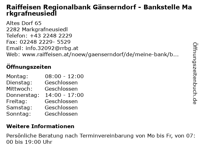 Branchen & Suchbegriffe zu Raiffeisen Regionalbank Gänserndorf - Bankstelle Markgrafneusiedl:abheben, aktien, bankstelle, beratung, devisen, finanzen, geld wechseln, geldautomat, gänserndorf, markgrafneusiedl, raiffeisen, regionalbank, sparen, vermögen, vorsorge |