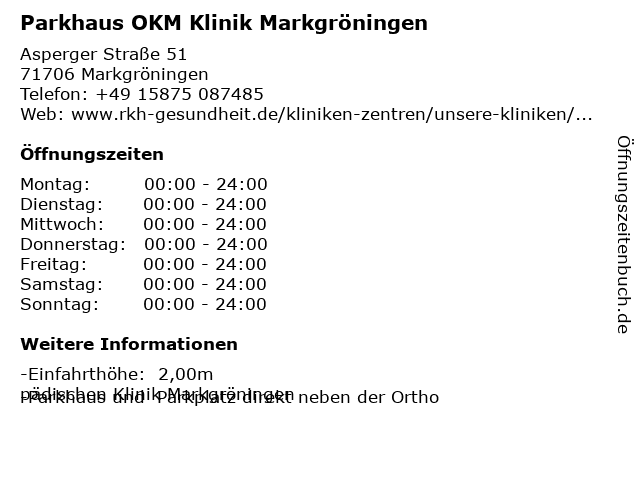 Branchen & Suchbegriffe zu Parkhaus OKM Klinik Markgröningen:besucherparken, klinik, mitarbeiterparken, okm, parkhaus, parkplatz |