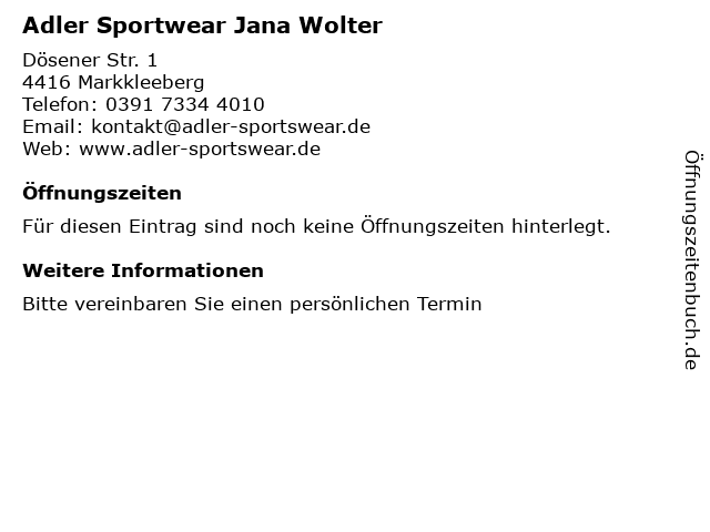 | Adler Sportwear Jana Wolter anrufen | |